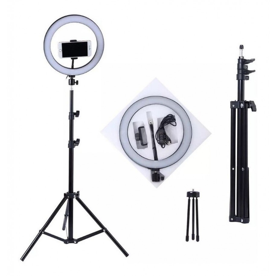 Aro De Luz LED 26CM 10 Pulgadas Luz Calida Fria Con Tripode 2.1mts