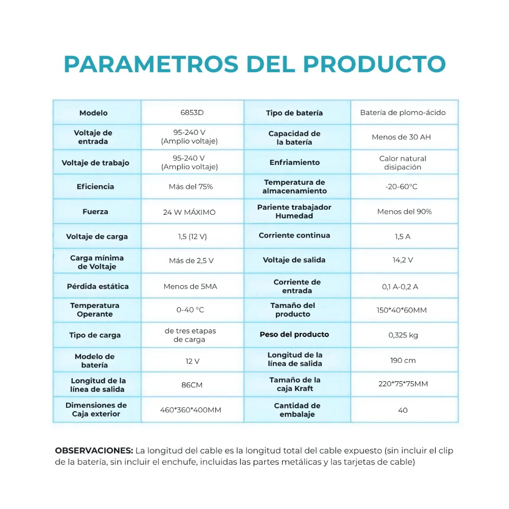 •           Ideal para autos, motos, camiones y equipos eléctricos