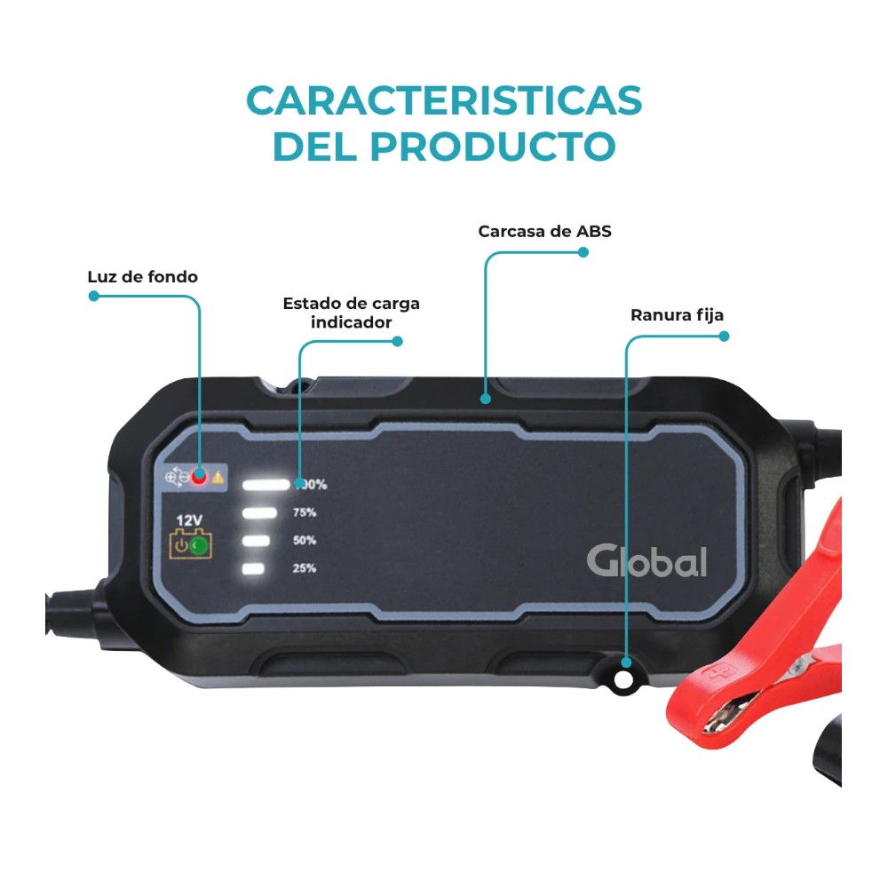 Cargador de Bateria con Pinzas Global JS8000-SC-220V Bateria 8000mAh
