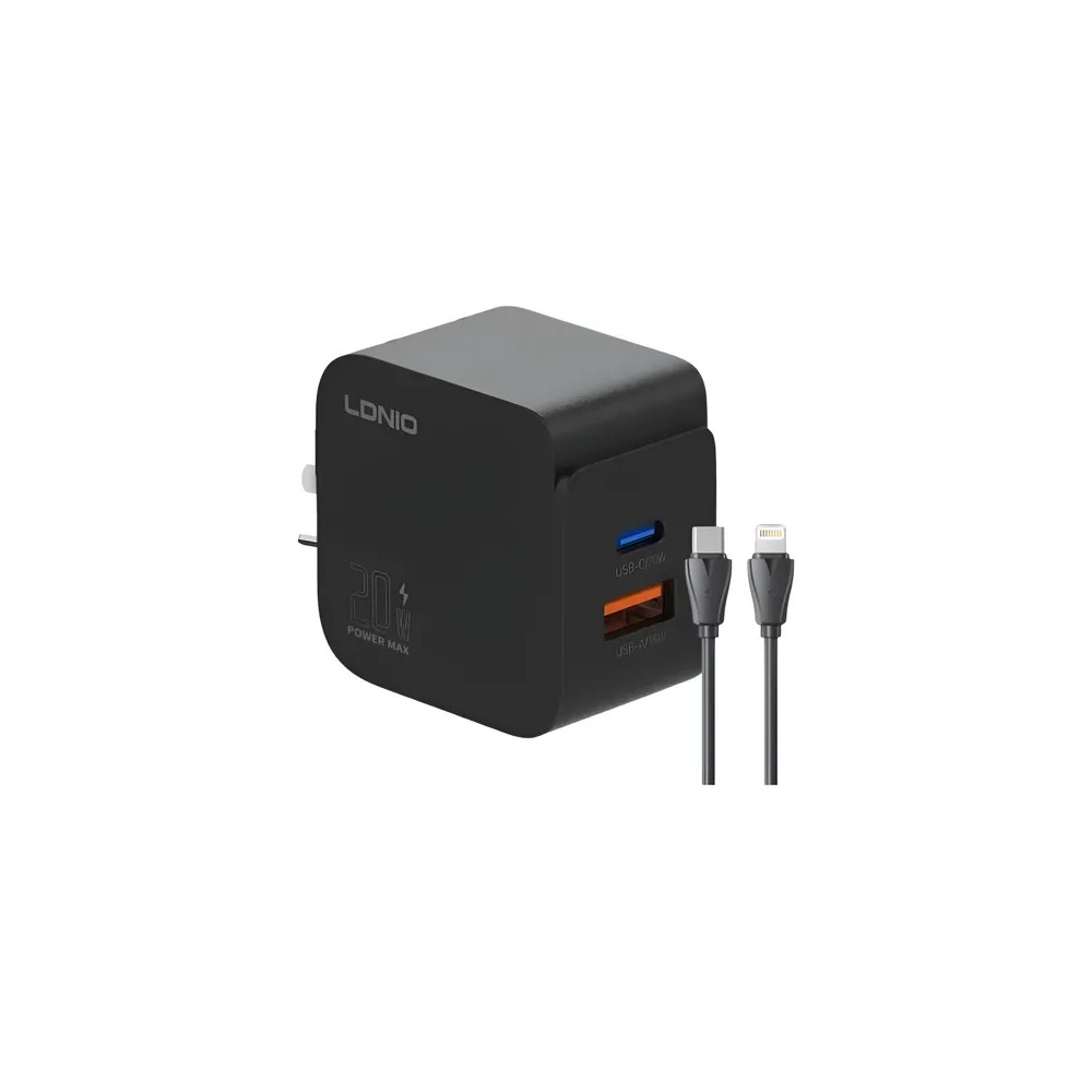 Cargador Cabezal Ldnio Q111 USB-A USB-C Tipo-C 20W Para iPhone Apple Con Cable USB-C A Lightning