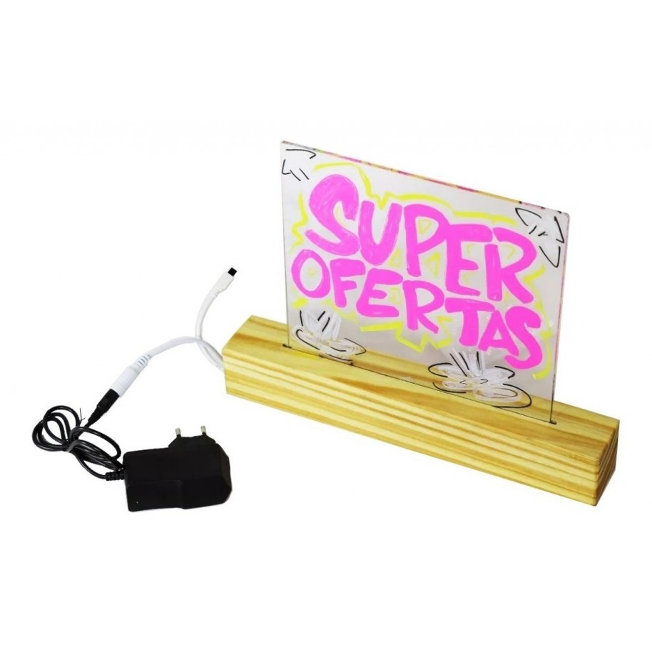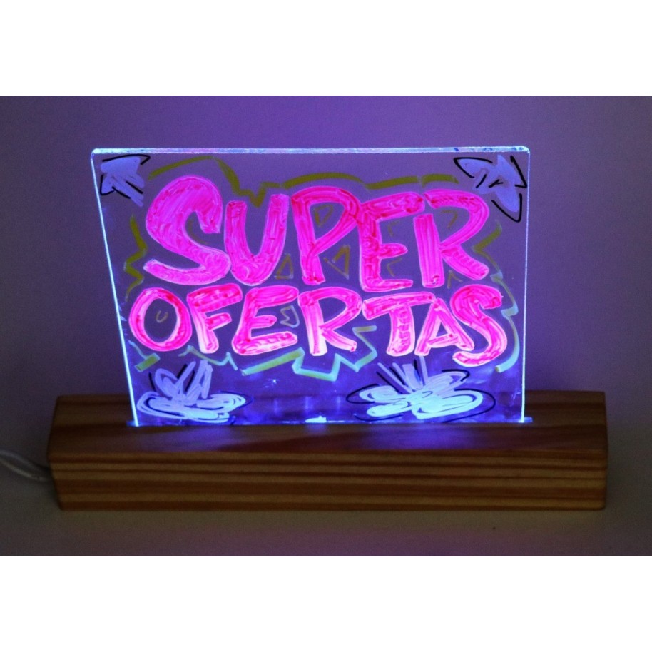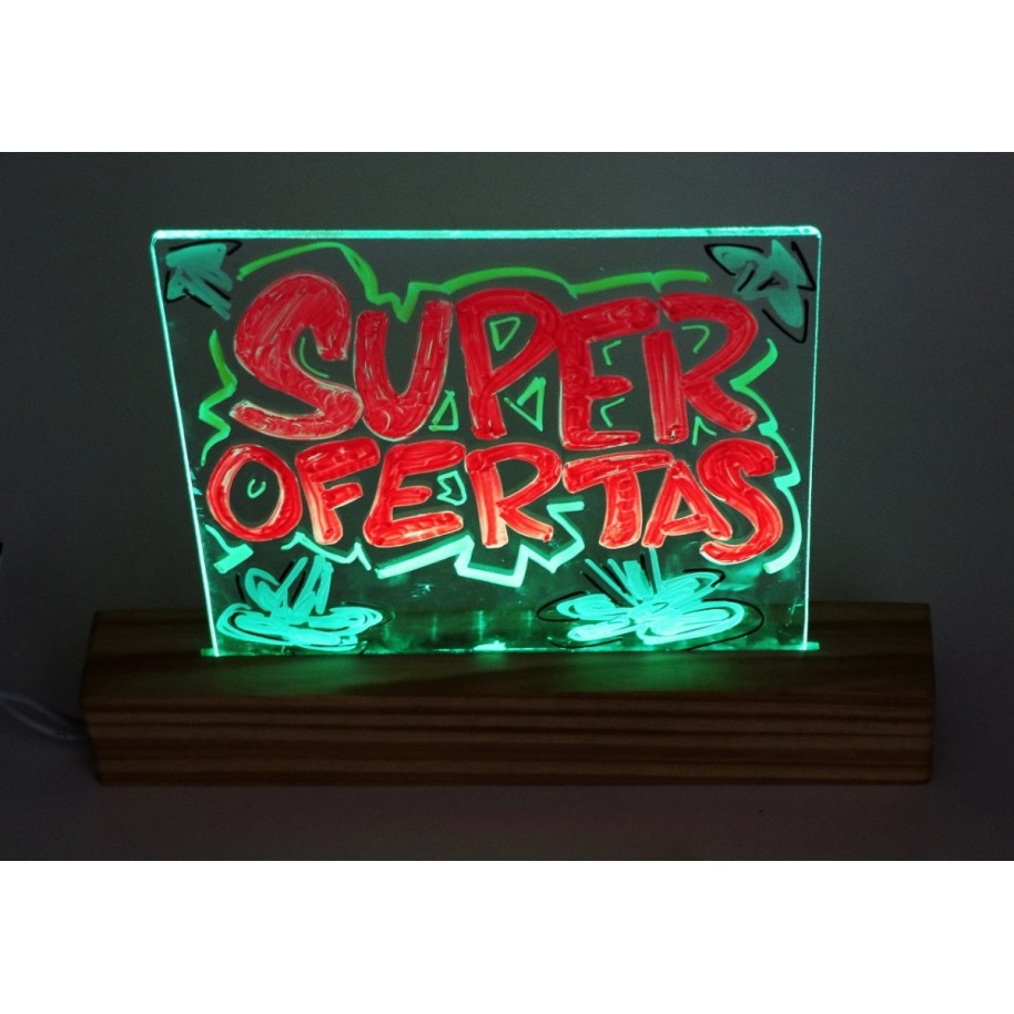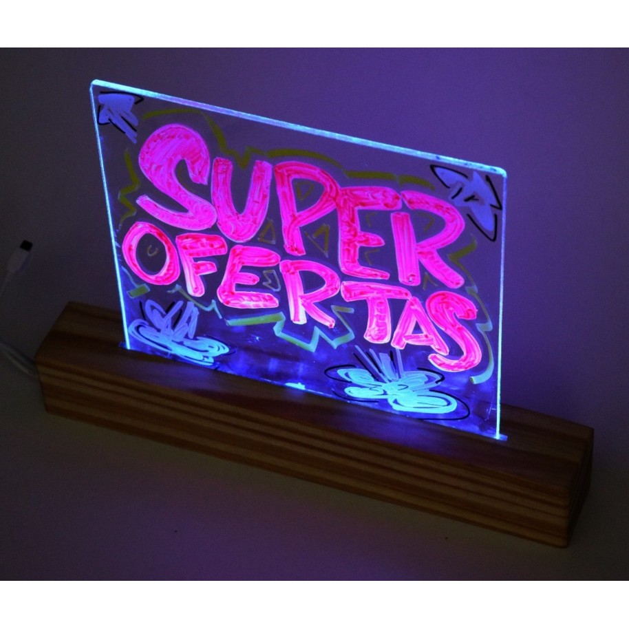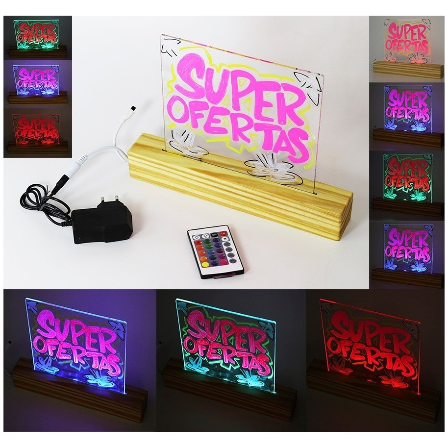 Pizarra Led Luminosa Rgb Control Remoto Base Madera