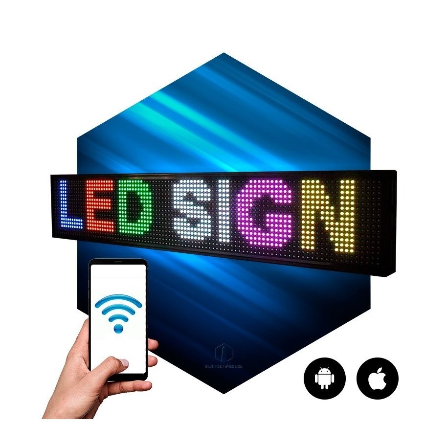 Cartel Programable Rgb Leds Con Wifi Verde Rojo Azul 1Mx20Cm Wifi
