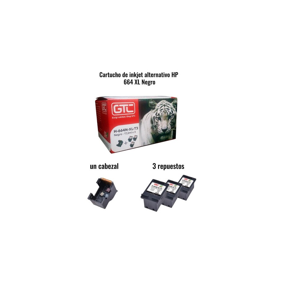Kit Cartucho HP 664XL 3 Repuestos + Cabezal Negro Ver más grande