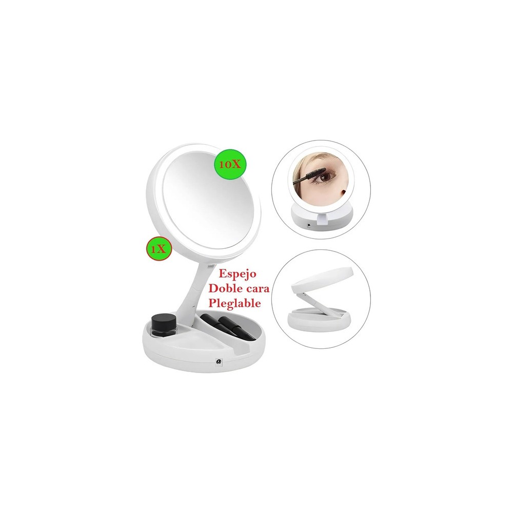Espejo Redondo Doble Cara Con Luz Led A 220V o A Pilas FoldAway Zoom X10