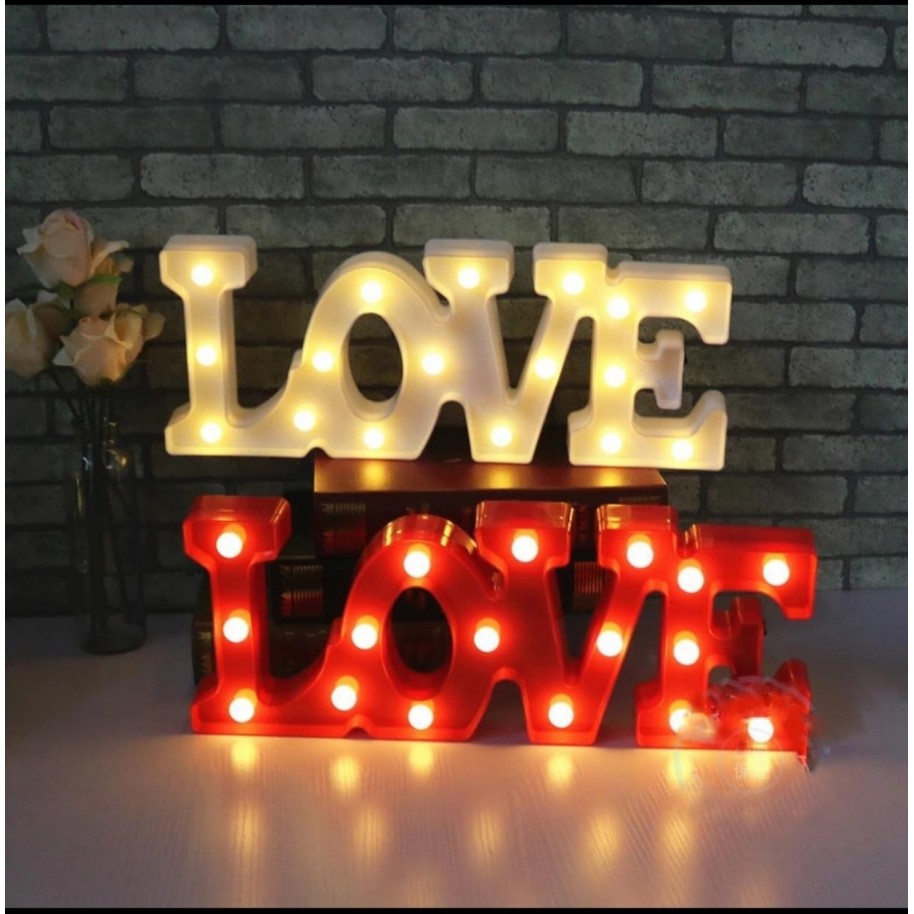 Cartel Luminoso Led Decorativa Love A Pila Color Roja Velador