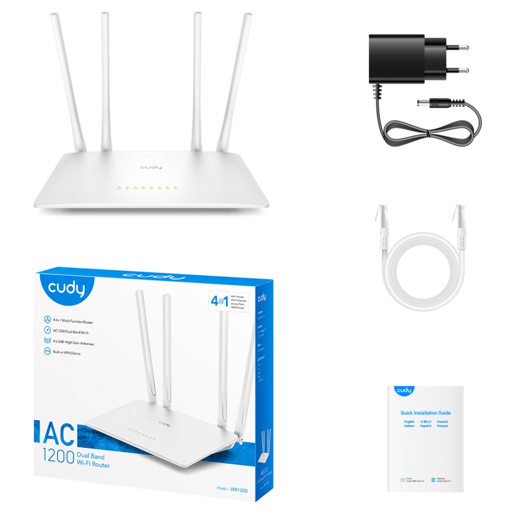 Router Wi-Fi Repetidor Extensor WISP Access Point Modo Cliente Cudy WR1200 AC1200 Dual Band 4 En 1