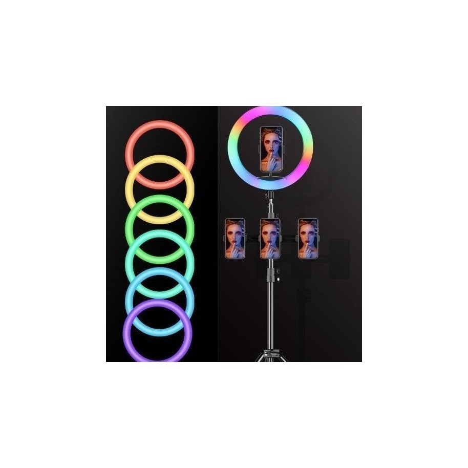 Aro De Luz Led Rgb 26 Cm Con Tripode 2.1Mts Ideal Fotografia Tik Tok Maquillaje Manicura Selfie